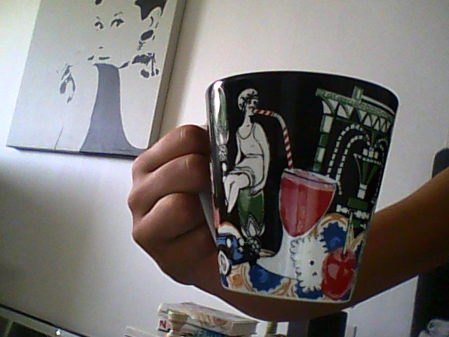 Jag sitter och dricker kaffe ur min favoritmugg, ”fika med farmor”. Använder den alltid. Idag har jag inte mycket mer på agendan än att promenera till gymmet (kör fortfarande lugnt eftersom hostan inte lagt sig trots medicin) och köra armar, rygg och mage. Sen jobbar jag kväll. Jag tar hand om en norsk grupp ikväll, med rätt svår dialekt så vi får se hur det går haha.
