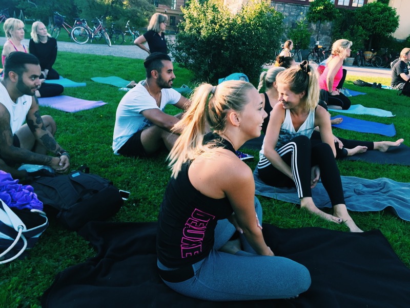 Sen stack jag över till Sara som bjöd på lammfärsbiffar innan vi gick iväg på yoga i Botaniska. Något jag definitivt ska fortsätta med! Kroppen kommer vara mör imorgon. Efteråt tog vi en fika på Stationen. Vi, Linnéas yogamatta & resten av alla snygga Uppsalabor haha..