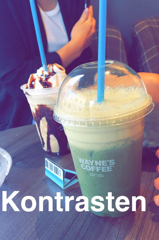 Igår hängde jag med tjejerna på Waynes. Jag drack någon form av grön gräsdrink (smakade nyklippt) och Sara smackade på med en frappe. Sen blev det hem för film i soffan.