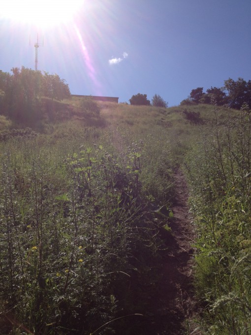 Vid 10.40 var jag klar för dagens utmaning. Mina knäns längtan till att försöka bli friska och vad passar inte bättre om att springa upp och ner för den värsta backen någonsin. Den ser inte mycket ut för världen när man står nedanför men efter halva är man helt slut och vill lägga sig ner och rulla ner av utmattning och mjölksyra.