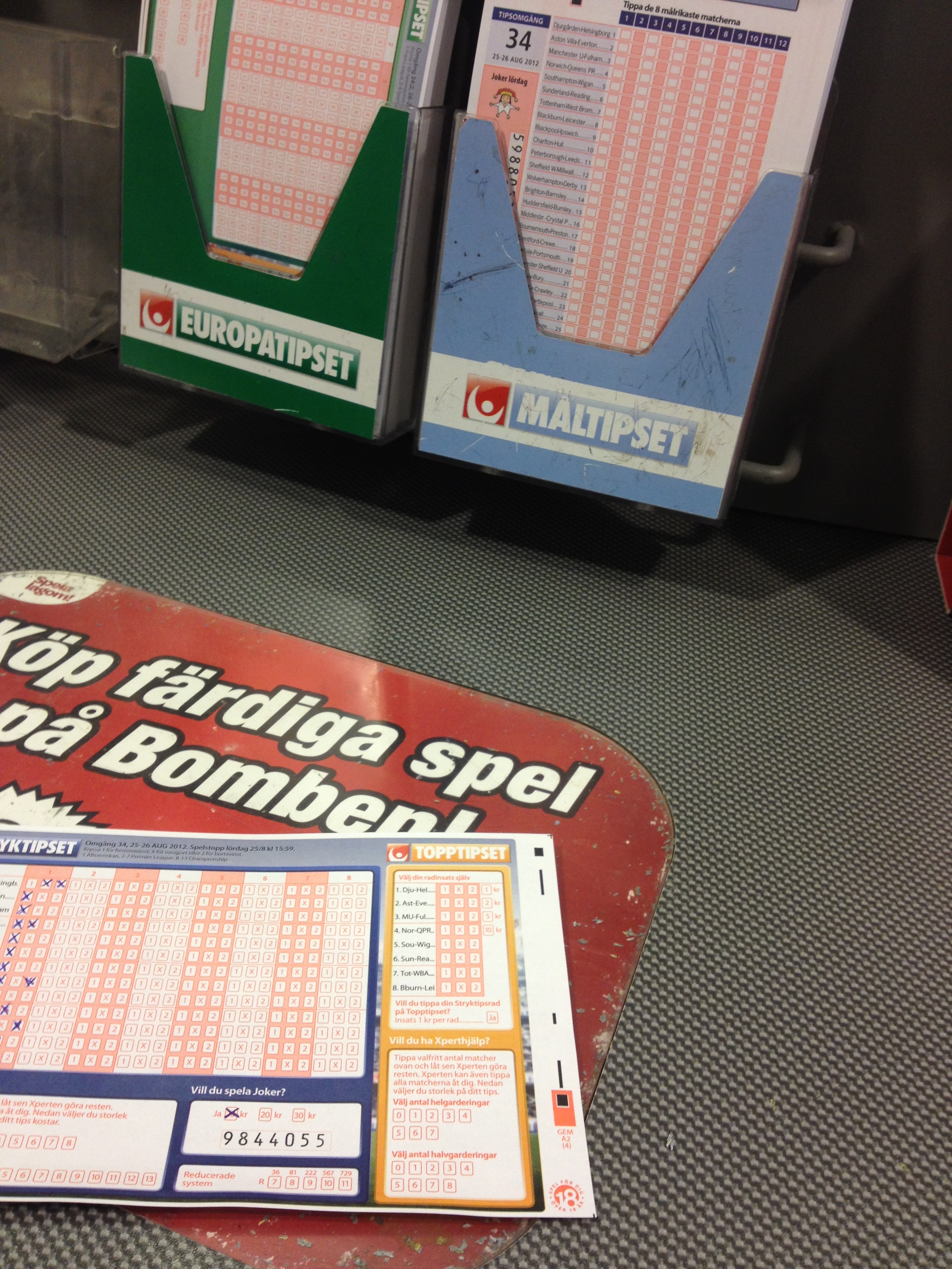 Ja, då var det lördag och jag har precis köpt lott. Detta är ett försök till att få fotbollen att bli en aning roligare och därför tog jag nu min oskuld inom detta område. Hoppas på 13 rätt och många miljoner!