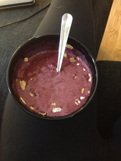 Sen lite frukost. Bestod av protein och blåbär! Och självklart müsli som jag älskar!