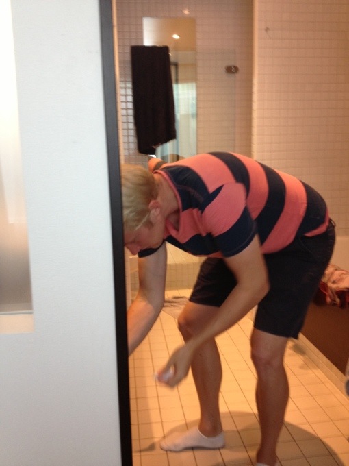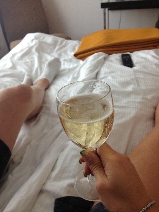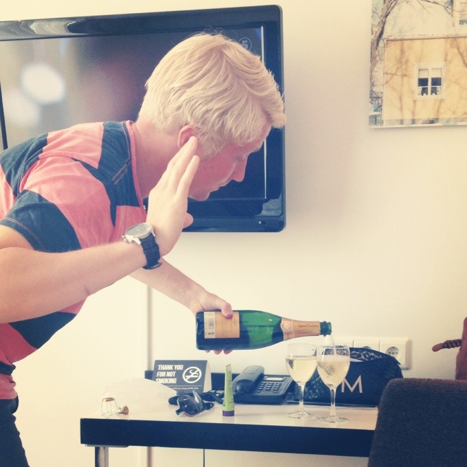 Snart ska vi checka ut men först ska vi dricka lite champagne!
