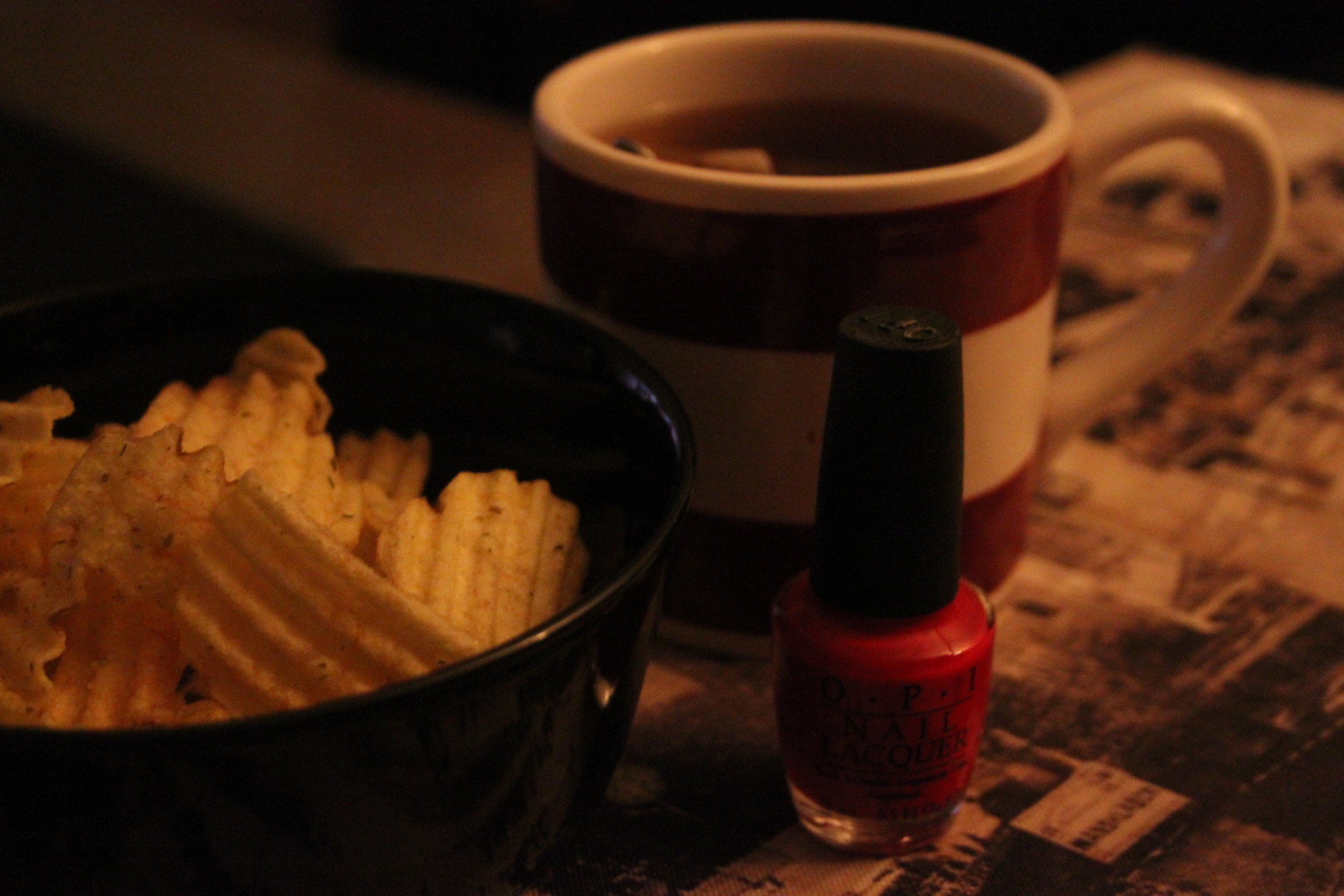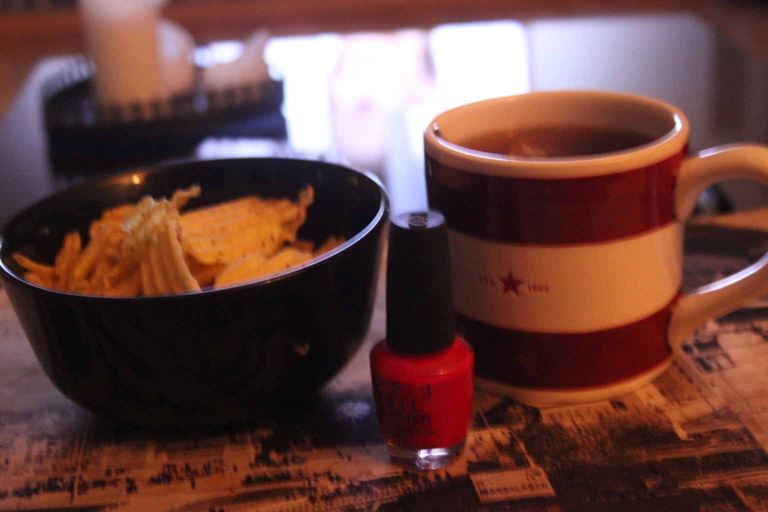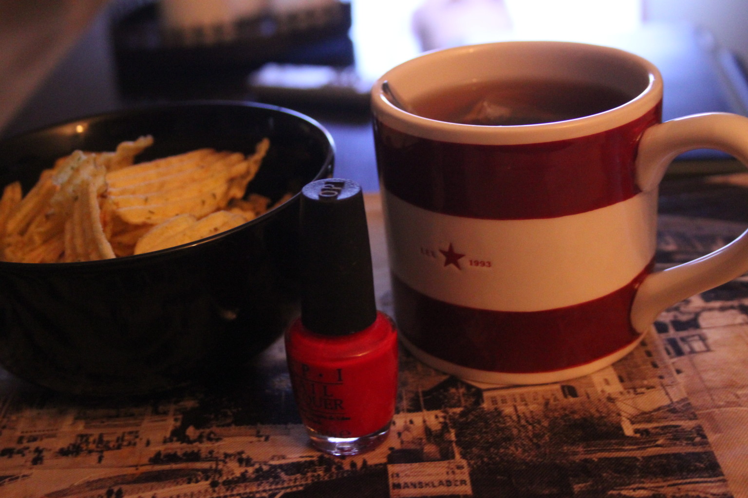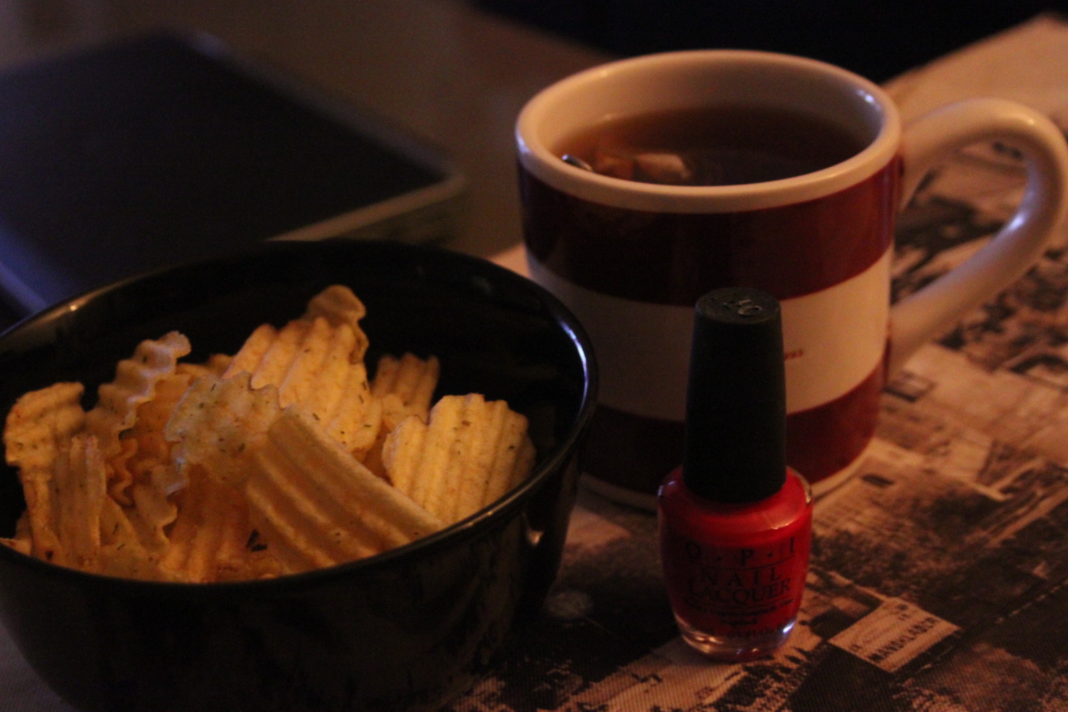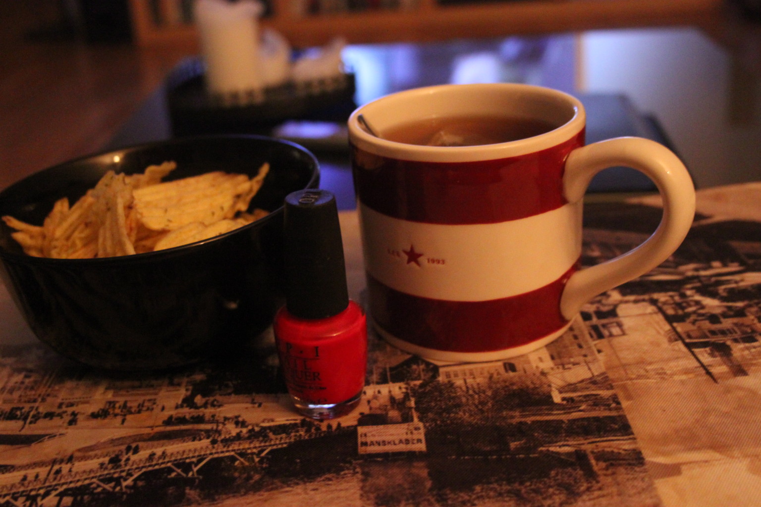 Fredagsmys på torsdag 14 mars 2014 av diabeteskvinnan Eftersom jag är en chips älskare passade jag på igår när jag hade kvällen för mig själv att äta lite då mitt blodsocker var på väg neråt. Myskväll helt enkelt med te och film!