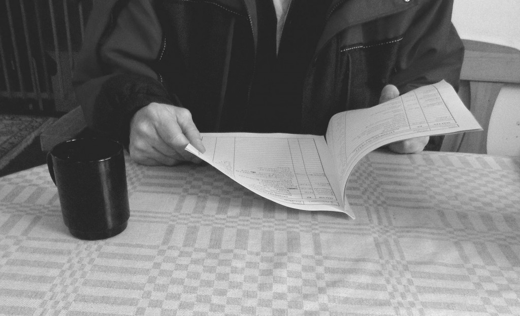 Morfar med min matdagbok i sin hand och en kopp svinstark kaffe… Mjölk? Socker? Absolut inte!