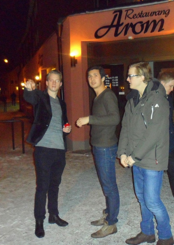 Vi käkade pizza på restaurang Arom, riktigt-riktigt bra ställe och oehört trevlig personal. 5 av 5, utan tvekan- På bild : Norlen, Mård och Asplund