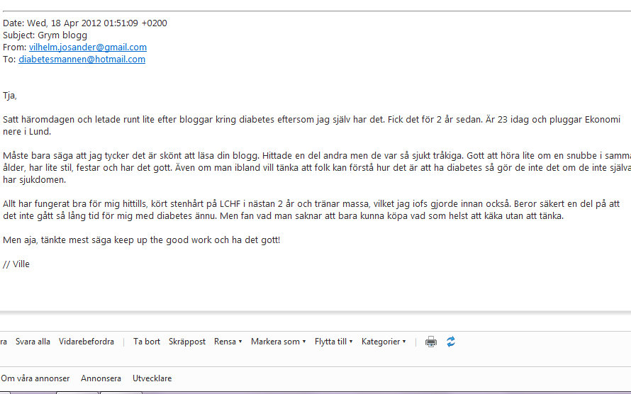Tja! Jag måste bara tacka för era mail, jag uppskattar det verkligen. Om det är något jag verkligen behöver i bland så är det positiv respons. Så fortsätt gärna maila mig :[email protected] . Jag garanterar att jag svarar på alla mail, men i bland är jag lite seg, haha.
