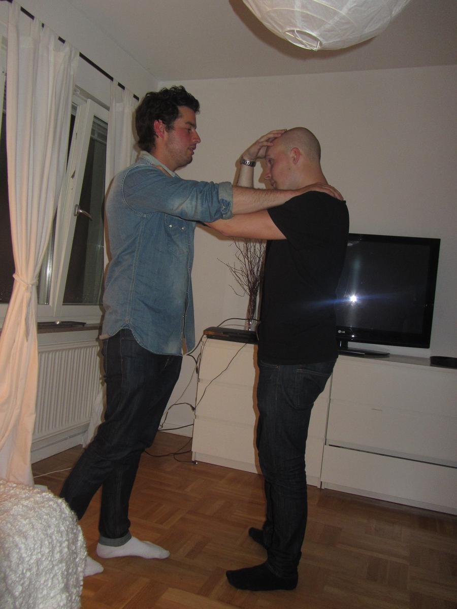 Sidekick Gustaf hade under kvällen kollat ruggigt snett på mig när vi drack öl, så jag sade till min livvakt att sig ett snack med honom. Och yes, det löste sig ganska bra.
