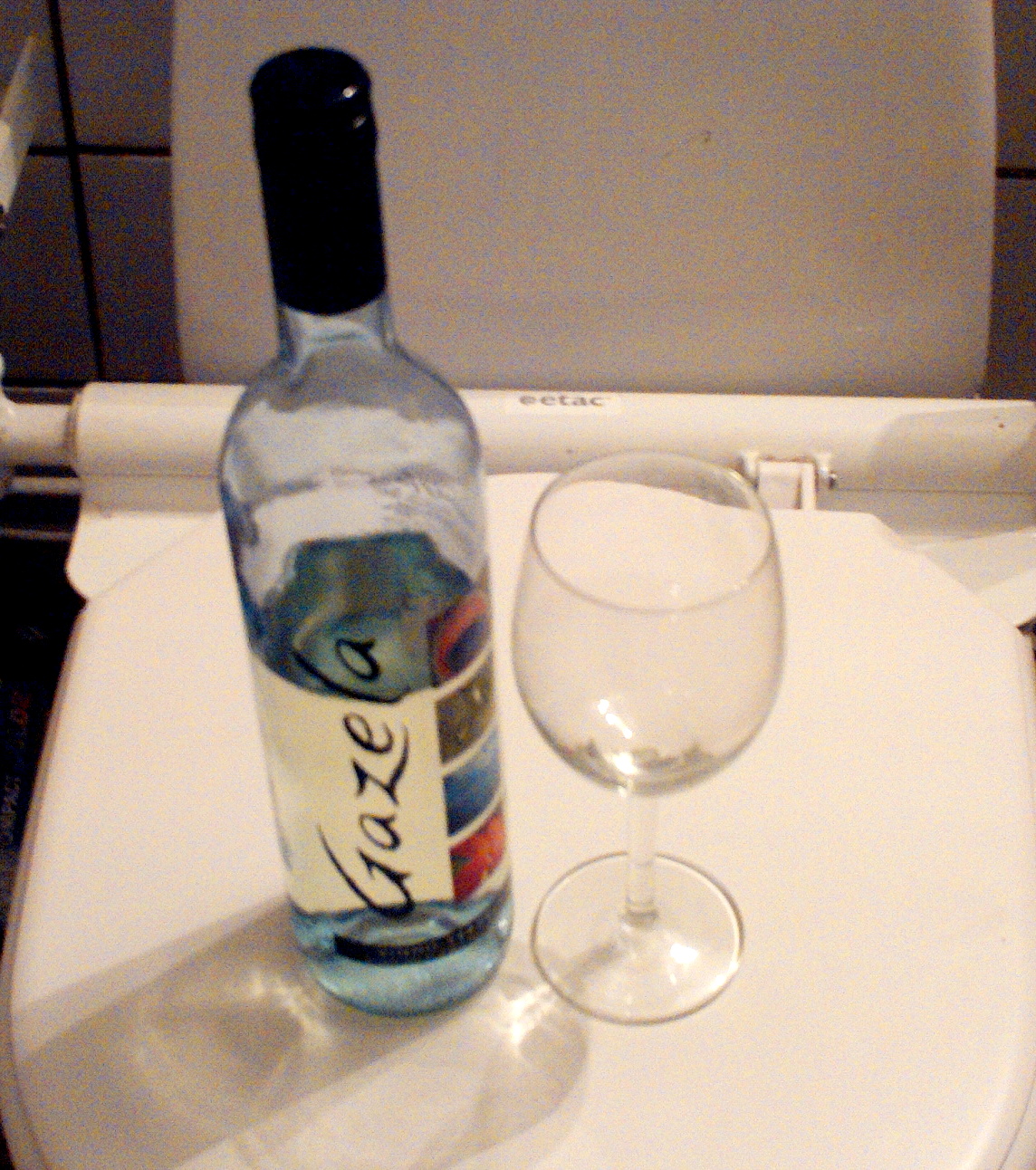 Även om jag är småkrasslig och bara är hemma, så betyder inte det att jag skippar vinet. Så jag gjorde så här : Jag tog med mig en flaska vin och laptopen in i duschen. Väl inne i duschen så slappnade jag av riktigt ordenligt. Jag småsmuttade på vinet och slösurfade lite lätt tills jag inte kunde andas. Som jag tidigare har sagt så får jag så jävla svårt att andas när jag badar/ duschar länge. Nejdå. Det är inget farligt. Det är för att jag duschar/badar i så varmt vatten. Haha.