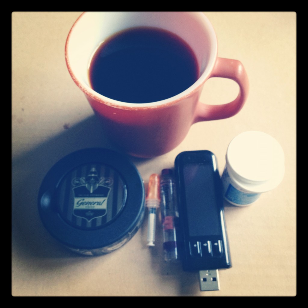 Detta har jag levt på i dag. Utan dessa prylar, så vore jag död. Ren sanning, tyvärr.