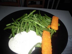 Kvällens middag blev fiskpinnar och brytbönor