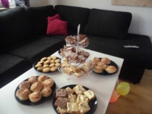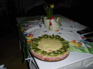 Jag gjorde smörgåstårta och en god chokladtårta med små marsipan kycklingar på till påskfirandet. 🙂 En bild på smörgåstårta en chessecake jag även gjorde och påsklovskryssning ser ni nedan: