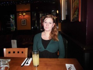 På bilden ovan dricker jag en Apple strudel det var gott, inväntade lite fish and chips med ”garden peas.”