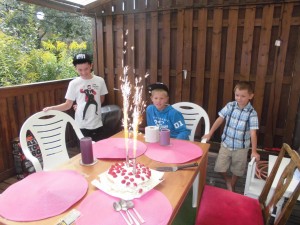 Augusti: Min stora son fyller år, vi badar mycket innan jag ska börja jobba igen 🙂 Jag har en rolig grillfest på min altan/uteplats.