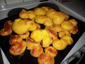 Idag: Har jag gjort hemmagjord pyttipanna som min stora son tyckte mycket om. Fick gratis potatis av grannen som jag stekte med julskinka och gullök. 🙂