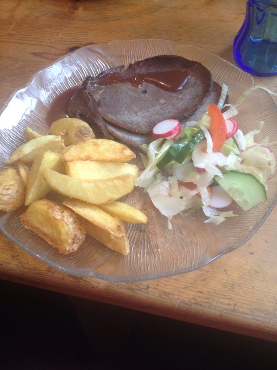 Middag. 24 maj 2014 av Diana Har nyss ätit ”fin” middag, på menyn stod porterstek, klyftpotatis och rödvinssås. Inte illa asså! Just nu sitter jag och väntar på att bli hämtad sen blir det ett par öl på ”stan”.