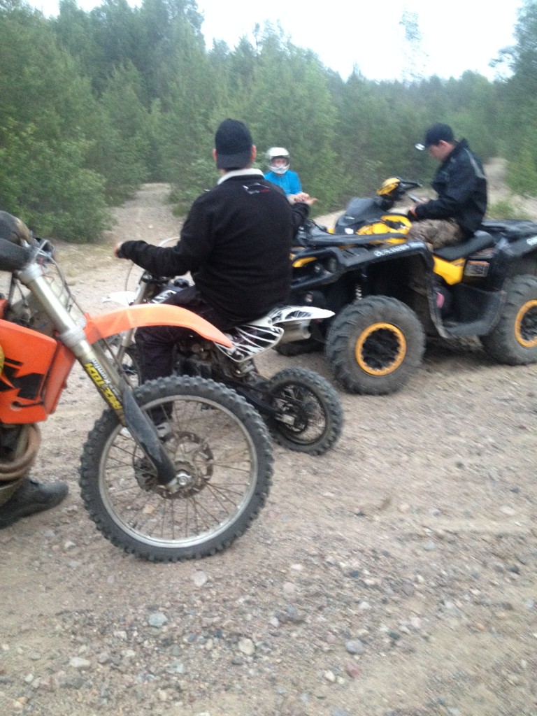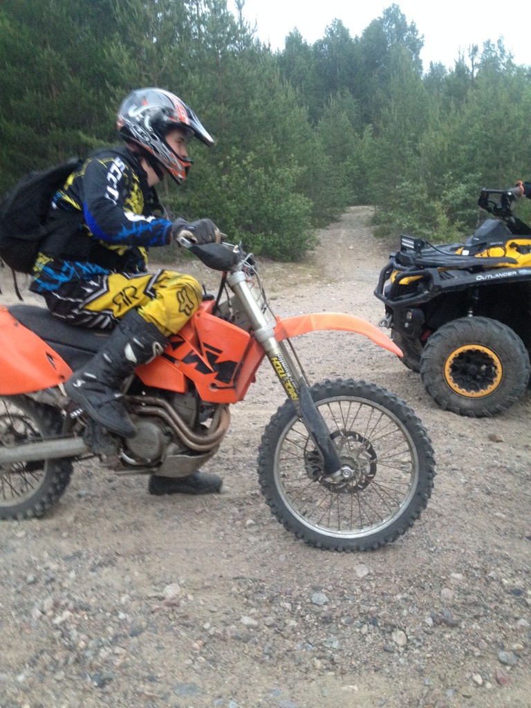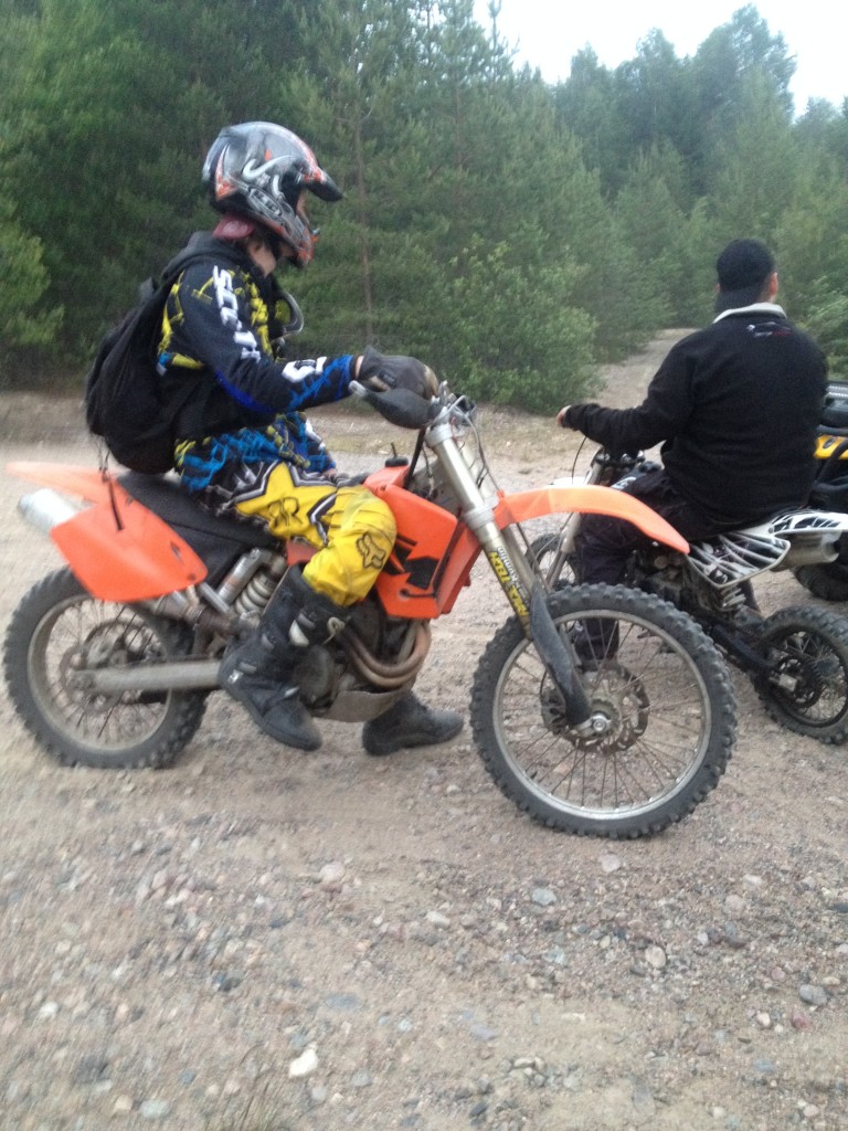 Igår så stod jag och några kompisar i stan och får en spontan idé om att vi ska dra ihop lite folk och åka upp till grustaget, sagt och gjort så fick det bli. Vi fick ihop typ 9 personer, 1 cross, 2 fiddys och en fyrhjuling inom loppet av 30 minuter. Inte illa pinkat om jag får säga det själv.