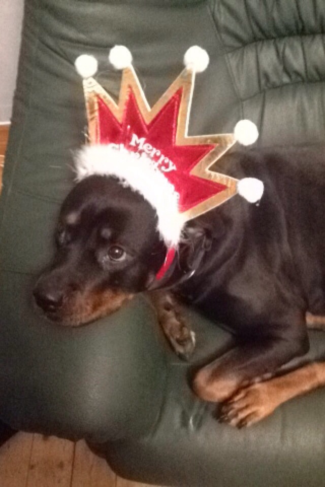 Nu har jag pyntat hela huset för att få in lite julstämning men råkade gå lite långt så tillockmed hunden vart pyntad 😉