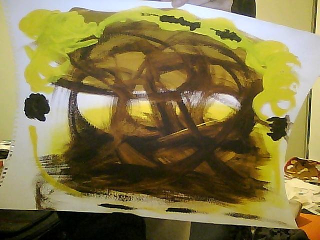 Detta är bara ett av mina fast and furioskonstverk(ett uttryck jag precis kom på ikväll) som tog knappast ingen tid alls att skapa, en del gillar den kanske en del inte, men jag bara gjorde den utan att tänka så mycket på vad jag målade och så blev det någonting snabbt tillslut……..;O)