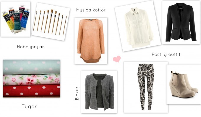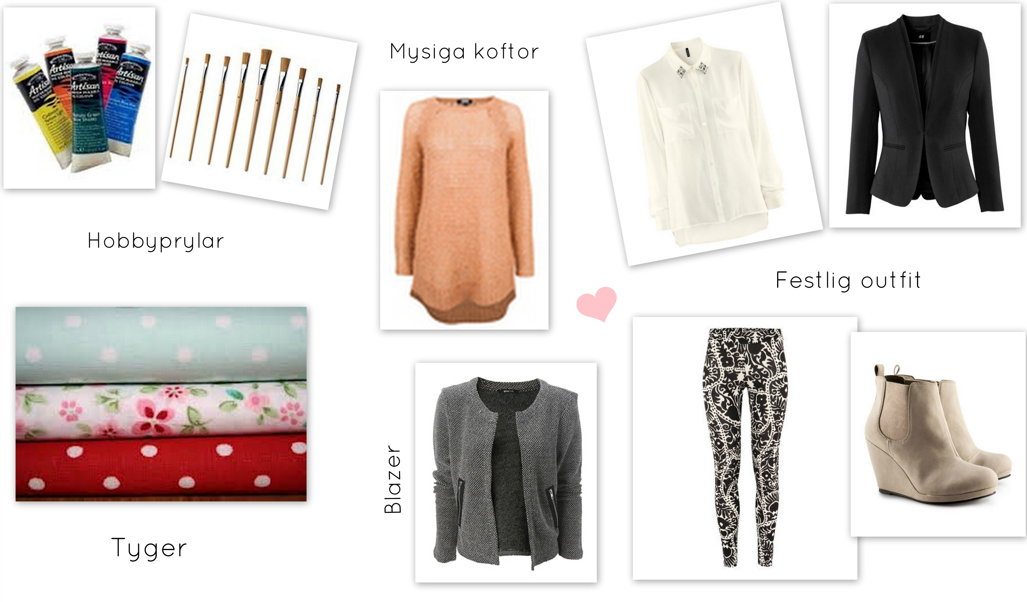 Till dig kära tomten, så önskar jag mig en del hobbyprylar i år och även lite kläder.