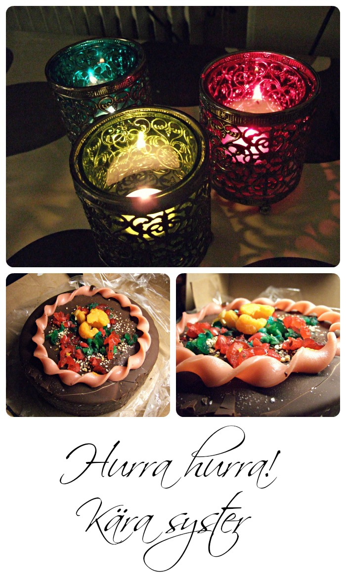 I eftermiddags var jag hos min kära syster och firade henne på hennes födelsedag. Fyra presenter fick hon av mig, hihi. Jag tror hon blev nöjd faktiskt.