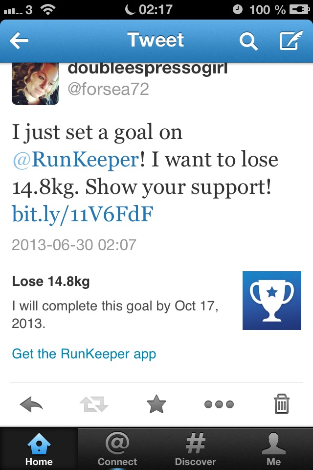 Weightloss goal part 2 is set! 30 jun 2013 av doubleespressogirl http://bit.ly/11V6FdF Love from Doubleespressogirl- Posted using BlogPress from my iPhone Location:Vallentuna,Sweden