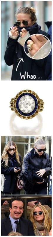 Mary kate and Olivier engaged 2014/03/08 av doubleespressogirl Engaged with a vintage ring from Cartier est price 81 000 $ Boyfriend Olivier is from France and is related to the former french president. With love and care ~Leoni