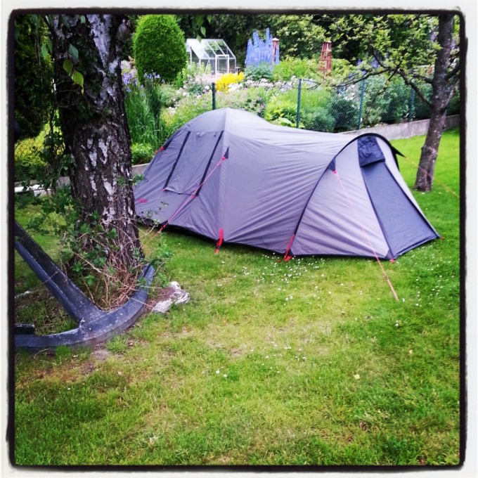 Lina fick som hon ville, tälta ute i trädgården 🙂