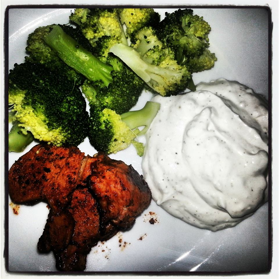 Fläskfile, broccoli och hemmagjord vitlöksås 🙂