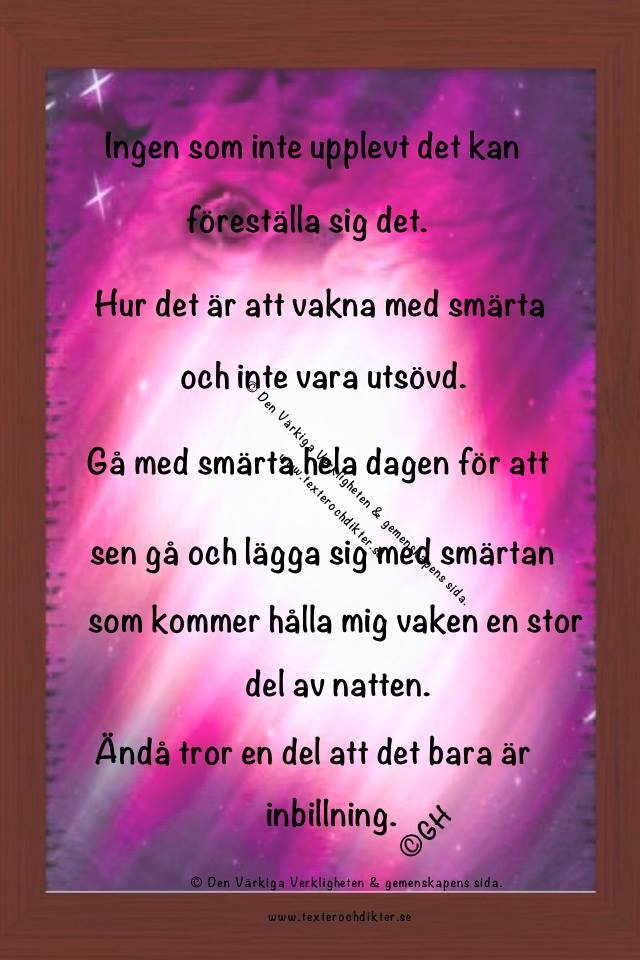 Du det är långt ifrån inbillning. Har en kompis som också har de å int fan är de inbillning. Folk som påstå annat e fan dum i huvudet. De folk int vet behöver de int yttra sig om. De kan ba dra. Stå på dig tjejen ♥
