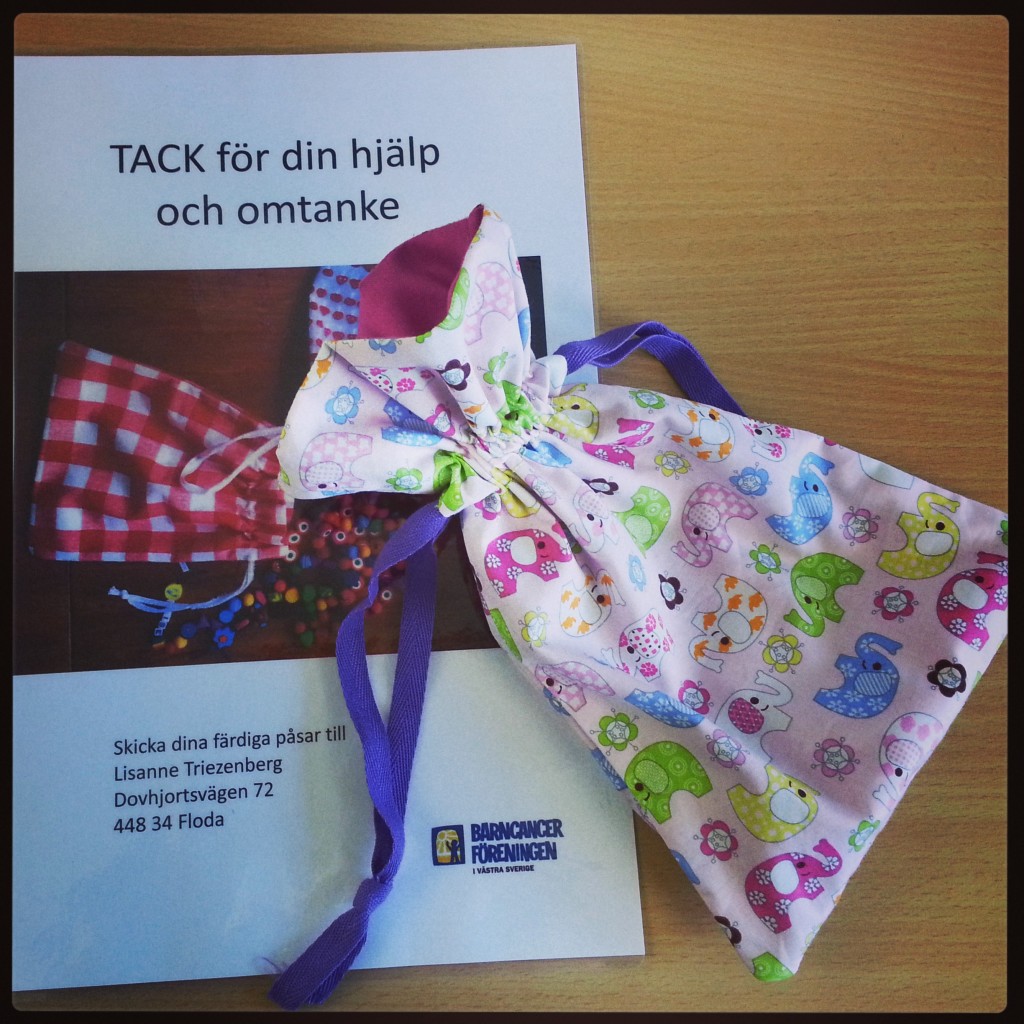 Efter mötet fortsatte jag med uppgifter som vanligt, igår ville jag göra en till påse (supersnöret), som skänks till barncancerfonden så jag fick göra detta 😀