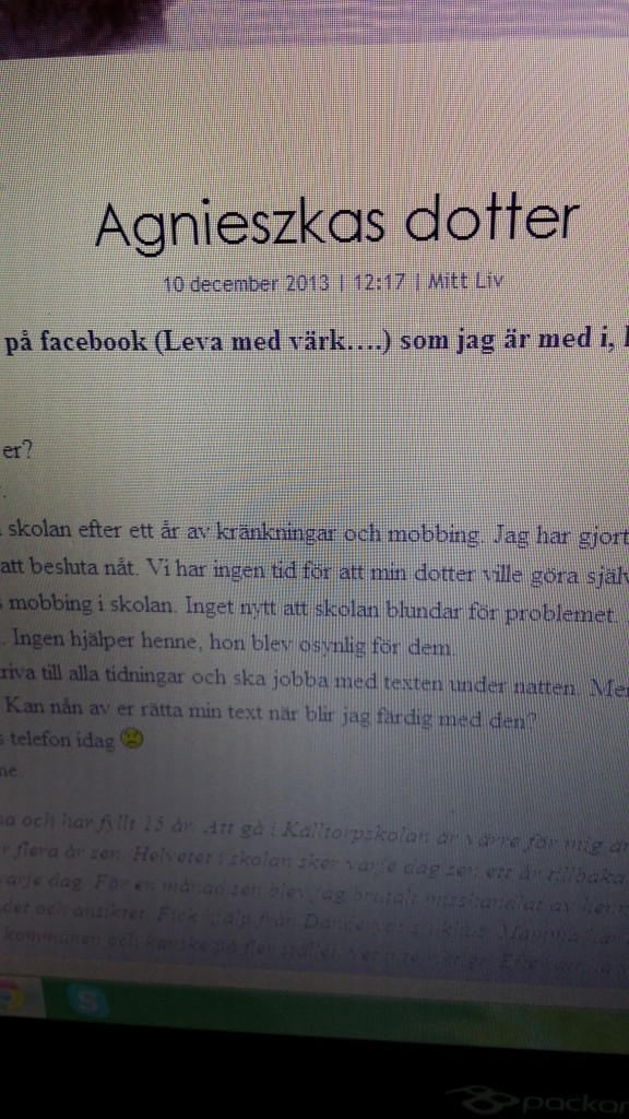 Jag skickade för några veckor sedan ett meddelande till henne och fråga hur det hade gått med hennes dotter som blev utsatt för extremt psykiskt & fysiskt mobbning.
