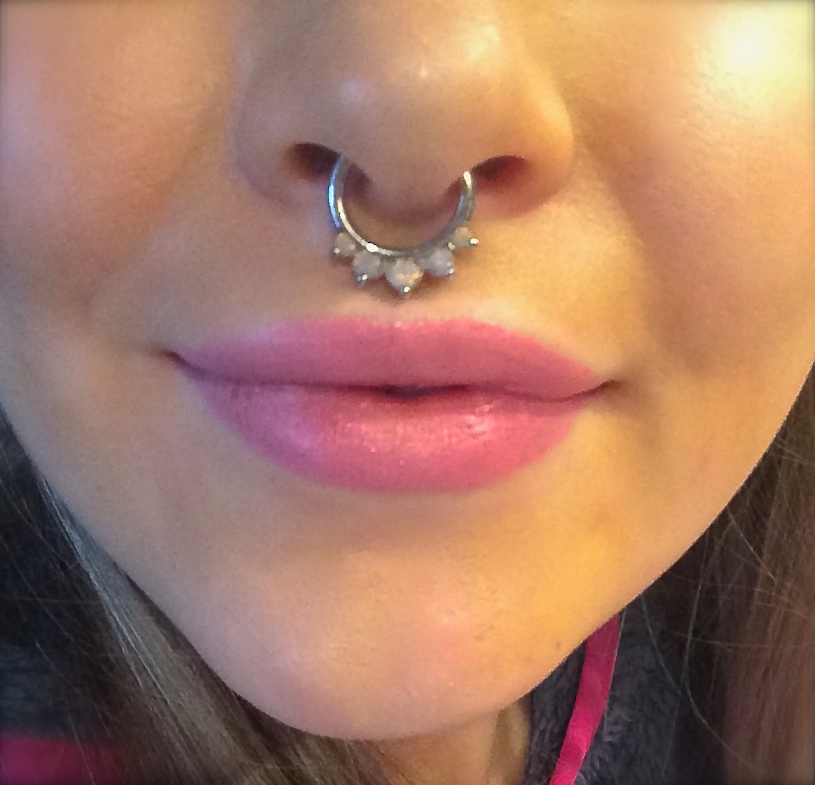 Jag ÄLSKAR min septum! Tycker själv att det är så sjukt snyggt. Jag gjorde den nu snart för ca 8 veckor sen till helgen, och jag har nyss börjat byta som man ska. Alltså vänta den tiden 😉 Men nöjd är ju ett ord. Denna septumen på bilderna fick jag av min fina syster i julklapp. Love it! So pretty.