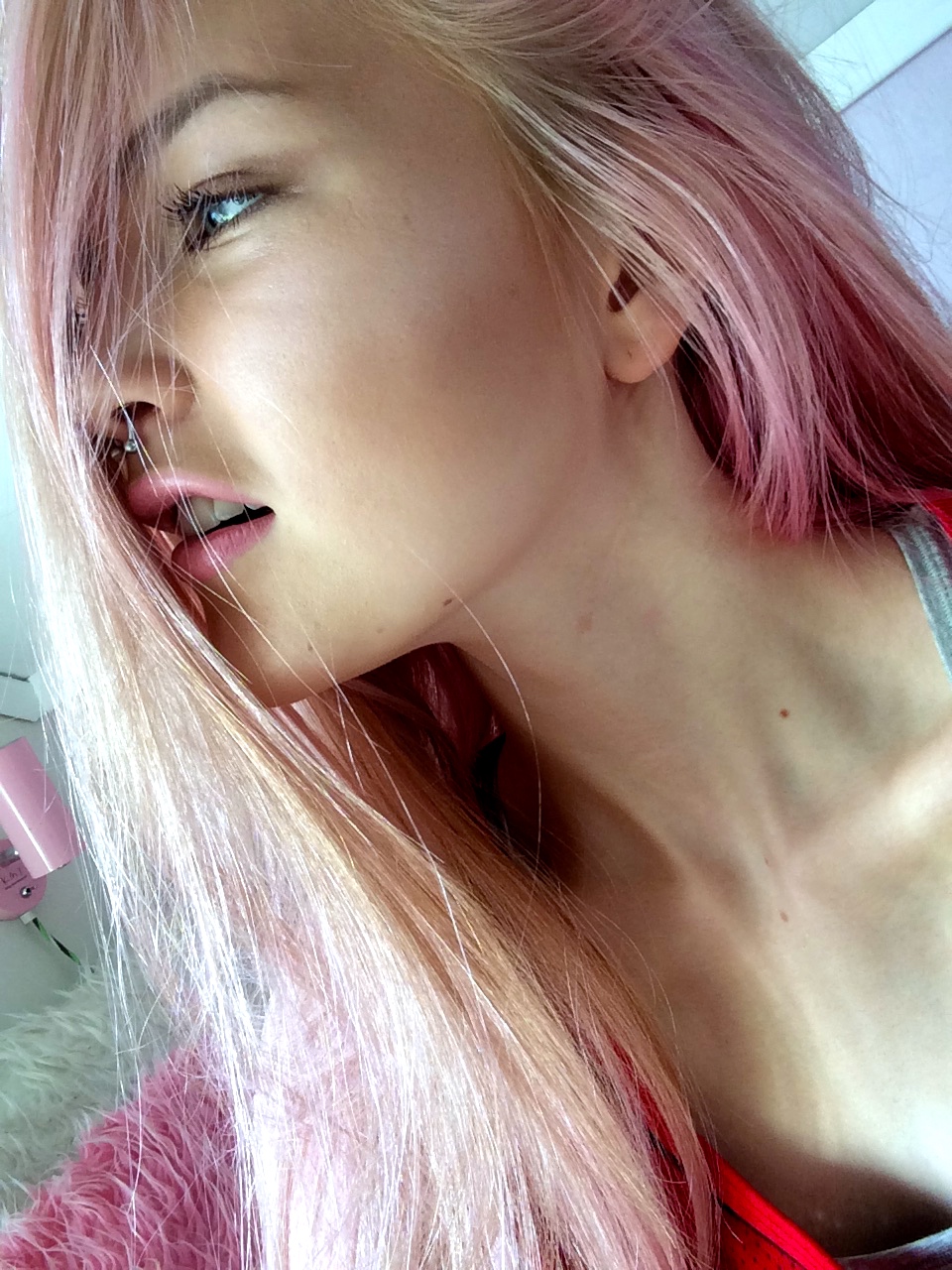 Gud vad fint hår! Jag har velat prova att ha lite rosa slingor i mitt hår men vet inte om jag skulle passa i det 🙂