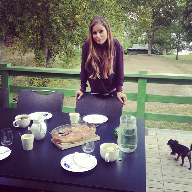 I går var jag och A ute på Drottningholm för att hälsa på Jessica och hennes pojkvän på hans fantastiska strandtomt med tre hus, sjöstuga och privat brygga. Det regnade när vi satt i taxin på väg dit men så fort vi kom fram sprack solen upp och vi kunde ligga och mysa på bryggan. Jag var faktiskt helt ovetande om Jessicas cooking skills men hon hade gjort en hemlagad paj som var bland det godaste jag har ätit! Finns det NÅGOT den kvinnan inte kan? Ha Ha!