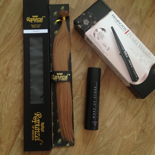 Man behöver ju inte vara både ledsen och ful i håret. Nya extensions köper jag som vanligt från Rapunzel och jag använder deras Luxury Nail Hair 45 cm i nyans nr 18, Dark Blonde (som jag skulle kalla Medium Strawberry Blonde). 3900 SEK per paket och ett pkt räcker precis lagom till mitt hår. Konsistensen är tunn, europeisk kvalitet som inte trasslar oavsett hur du sköter det. Dock ska du givetvis sköta det exemplariskt – varför annars lägga massa pengar på det?