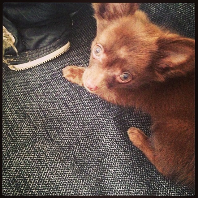 Jag har varit ledsen hela dagen, men vem kan vara det när man har denna valp framför sig? Meet Chocko Locco, min kompis Sanjas chihuahua-valp! Jag är ingen hundmänniska men detta var en liten nalle som pussades och bets om vartannat!