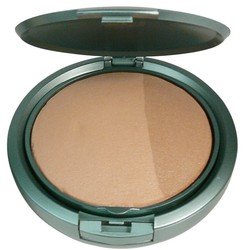 Formula: Bakat, fast puder med en lätt skimrande finish. Tillhörande platt borste ligger i ett fack i dosa med spegel i.