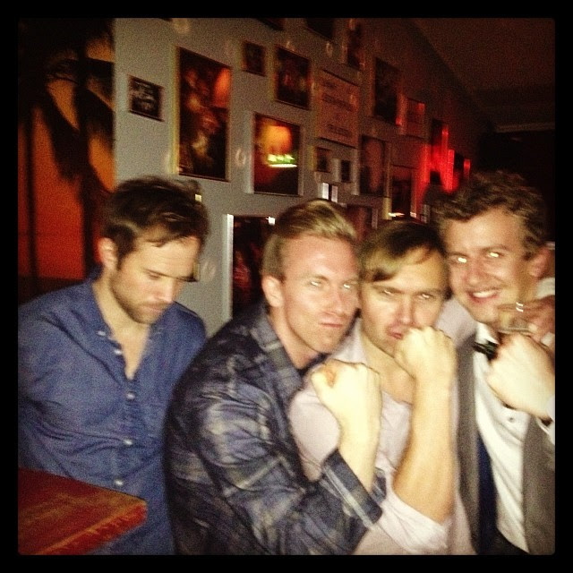 Helt underbar bild. Jag låg i min pyjamas vid 10-tiden i går och läste. Sedan tänkte jag – jag är 36. Inte 106. Tog en taxi ner till stan och mötte upp mina kompisar på Kafé De Luxe. Jag är ingen ”jag hänger hellre med killar för de är rakare”-tjej. Det är bara slumpen att jag, förutom min barndomskompis Sara, bara har killkompisar här i Växjö. Men detta var så mycket roligare än att ligga hemma och läsa Hunger Games. Although we love the Hunger Games!