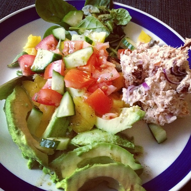 Jag är bra på det här med hälsoluncher. Dagens lunch bestod av en sallad med tonfiskröra; tonfisk, matlagnings-yoghurt, kapris , soltorkade tomater, citronpeppar och rödlök. . Jag skäms dock över att säga att mina frukostar fortfarande består av en burk cola zero. Jag är aldrig hungrig för 12. Idag skulle jag dock träna vid 11 så jag tryckte i mig en Body Science Protein Meal-bar (15 SEK) i smaken Strawberry/Lemon. Det är inget fel på smaken men de är väldigt mäktiga! Jag kan som mellanmål rekommendera smaken Äpple/Kanel innehåller naturliga råvaror från ren äppeljuice och naturlig kanel. På gymmet körde jag rygg idag, och gjorde marklyft för första gången i mitt liv – då jag har hört att det ska vara jättebra styrketräning för hela kroppen. Använde bara 5-kilos vikter för man vill ju inte sträcka sig det första man gör!