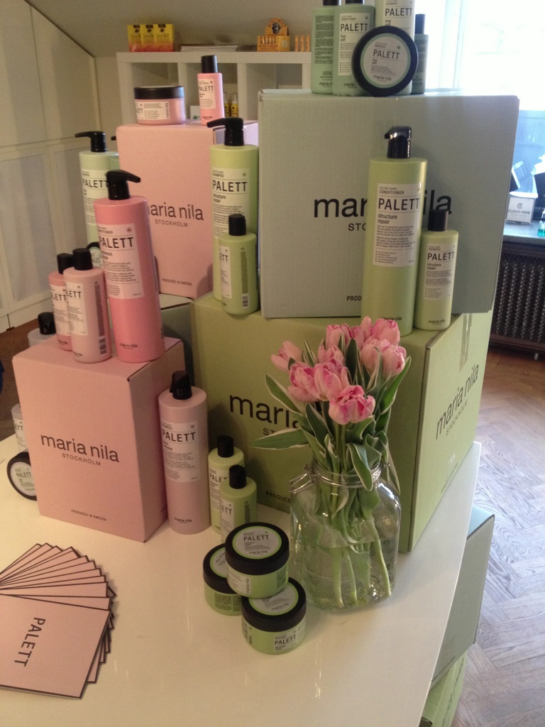 Nu räknar jag med att alla mina läsare har hunnit testa något från mitt nya favvo-hårmärke nämligen MARIA NILA. Jag är ju kär i deras PALETT-inpackningar (ni som har Glossy Box har säkert fått hem en prov i lådan) och jag har nu lyckats testa mig igenom alla deras serier utom den lila Sheer Silver-serien som utlovar att göra blont hår ljusare. Det jag älskar mest med Maria Nila Palett (förutom godisdoften och att  alla passar färgat hår), är att den är så extremt utredande. Mest utredande är True Soft tätt följt av Structure Repair. Nederst på listan hamnar Luminous-serien, då jag anser den vara minst utredande eller utslätande. Dock ger den mycket glans! Jag rekommenderar att köpa schampo och inpackning i Maria Nilas Palett-serier – balsamet känns bara överflödigt!