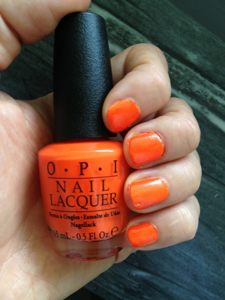 Ni läsare får tyvärr vänta tills i mitten av maj då de dyker upp på hyllorna. En av mina favvo-bloggerskor, Tina ”Beleza”, har redan varit så flitigt att hon swatchat alla nyanser. Jag tog direkt tag i den orange Juice Bar Hopping. Resultatet kan ni se nedan. Älskar nyansen men jag upplevde det något svårare att få ett helt jämnt resultat med denna bas – men jag är verkligen ingen expert när det gäller lackning, brukar överlåta det år proffsen. Två lager färg behövs definitivt! Utan Put A Coat On! blev nyansen något mörkare och inte lika mycket neon. Korall-färgade Down To The Cor-al och Hotter than you Pink (båda främre raden) kommer också att synas på mina naglar i sommar!
