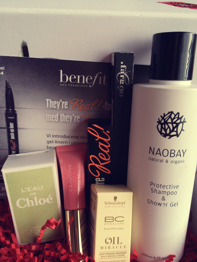 1. Jag fick Shampoo & Shower Gel, håroljan, kajalpennan…