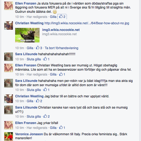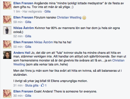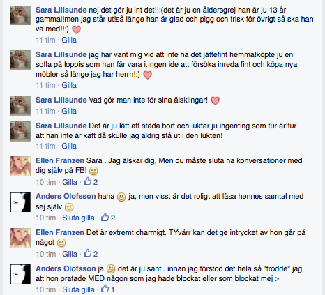 Jag har ju även en tendens att skriva flera egna kommentarer på rad, men ingen kan prata med sig själv som Sara ha ha! (Se sista)