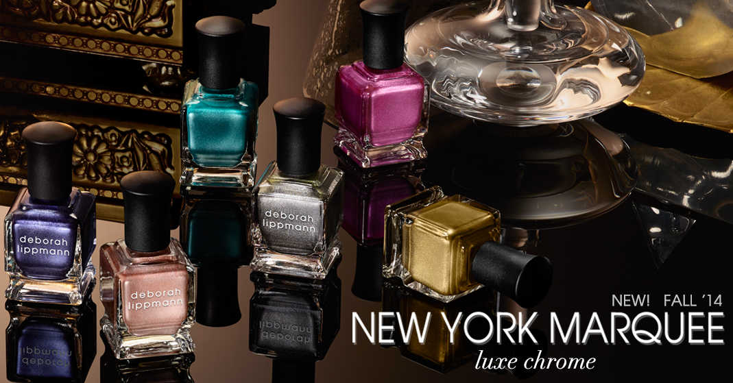 DEBORAH LIPPMANN lanserar två nya limited edition-kollektioner i höst/vinter. Först ut är New York Marquee Collection som inspireras från Lippmanns hemstad och 1940-talets lyxiga vintagetyger. Formulan har en” innovativ krom-textur” och utlovar blir därför komplett täckande efter en enda applicering, utan att bli randig eller ojämn. De sex lacken är namngivna efter ikoniska New York-melodier; Take The “A” Train, Autumn In New York, Lullaby Of Broadway,12th Street Rag, Harlem Nocturne och I’ll Take Manhattan. Vintern representeras med Fantastical Collection som ska passa säsongen festligheter. Tre av lacken har en skimrande finish; Wierd Science, Dr Fantasy och Dream Weaver. De andra tre är glitterlack; turkosblå Xanadu, Marrakesh Express av grovslipade glitterflarn med ett extremt lyster samt Magic Carpet Ride som beskrivs som ”en galax av exploderande glitter i former av diamanter, cirklar och hexagoner”.