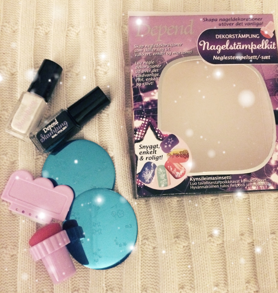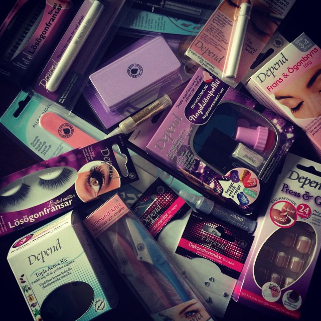 Idag kom DHL med bud och i det låg produkter från DEPEND som passar inför helgerna och nyårsfesten; dekorationsglitter till naglarna (39 SEK), lösögonfransar (79 SEK) med mera! Jag är ju inte så ”pysslig” när det gäller naglarna men jag ska försöka mig på Depends Nagelstämpelkit (129 SEK) idag, och göra rosett-mönster på naglarna. Det står att kitet är snyggt, enkelt och roligt” så till och med jag , som är lite klumpig, ska ju förhoppningsvis kunna fixa detta!