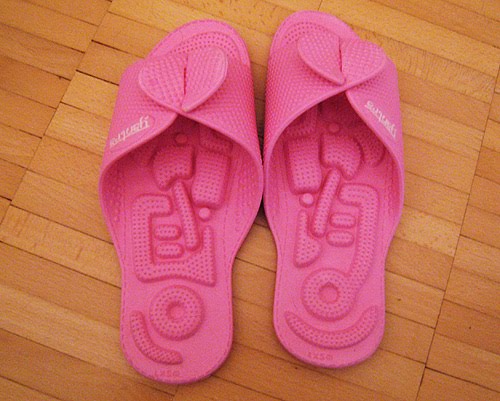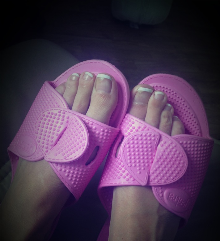 … är Yantra twinflew– en lätt toffla i gummi som ger dig zonterapi för varje steg du tar! De större punkterna är utplacerade i sulan enligt zonterapin uråldriga lära och så mjuka att du inte kommer att uppleva något obehag. Kostar bara runt en hundralapp och finns i de flesta hälsokostaffärer. Dessutom söta tycker jag! På tånaglarna har jag fransk Gel Polish från Luxury Fingers & Toes.  Bjuder även på en Värdecheck på 150 SEK på Rapunzel. Rabatten gäller fram till sista januari och när du handlar för minst 500 SEK.
