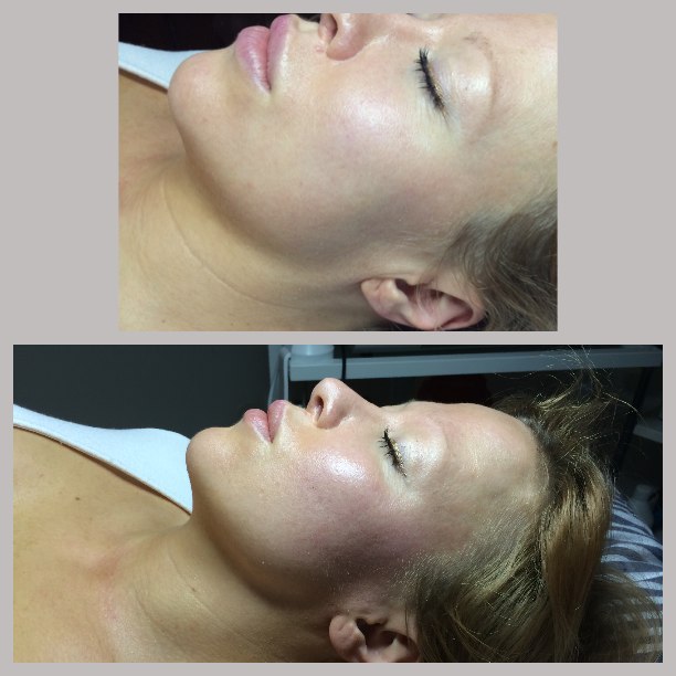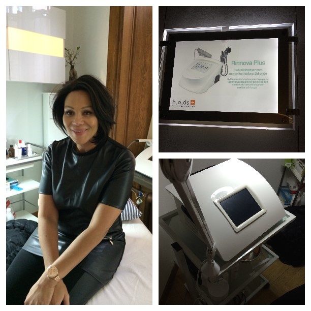 Jag har ju skrivit om hud-uppstramning med radiovågor/radiofrekvens (RF) i flera tidigare inlägg då Beatrice Renner har behandlat mig. Hon jobbade då för märket Nannic men har nu gått över till h.o.d.s maskiner som har en högre frekvens och mindre munstycke (som kan komma åt bättre, ex under ögonen). Bea gjorde med denna maskin ett lymfdränage på mig och som ni kan se på min före/efter-bild får man efter en enda behandling skarpare drag/ansiktskonturer. Alla har lite lymfvätska men jag är en person som samlar på mig mycket vätska överhuvudtaget, i hela kroppen. Då kan det exempelvis se ut som om man har dubbelhaka, eller slapp käklinje – fast man inte har det. Som jag! Ni borde testa!