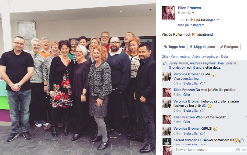 Efter middagen igår satt vi alla i vackra Glasbaren och tog några drinkar. När klockan ringde halv 8 var men inte i sin piggaste version, men vi hade bara halvdag på utbildningen och avslutade 12 med en lunch innan vi åkte buss tillbaka till Växjö. Gänget ovan kommer jag spendera en hel del tid med de kommande fyra åren. Vilket jag verkligen ser fram emot, det är ett riktigt bra gäng! Sedan gillar jag att vi har en kvinnlig ordförande. Eva (C) är en riktig power-kvinna som har varit politiker i 20 år. The best man for the job was obviously s a women!