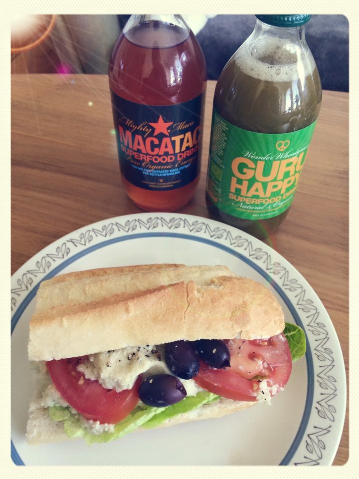 Baguette med hemmagjord bean-spread. Världens enklaste och nyttigaste bönröra med citron, basilika och parmesan i! Recept här. Till det organiska ”lycko- drycken” Macatac från svenska tillverkaren GURU HAPPY. Macatac innehåller maca-rot som kallas ”naturens Viagra”, då den ska öka sexlusten hos både män och kvinnor. Vilket jag iofs inte har någon nytta av f.t då jag inte har en pojkvän! Förutom det ska den även stärka immunförsvaret, verka antidepressivt och hjälpa vid PMS – vilket låter smått fantastiskt! Kanske lite väl bra för att vara sant? Dock är den sprängfylld av vitaminer och viktiga mineraler som järn och mangan och smakar gott – så jag är redan såld! Smaken påminner om ett svagt kolsyrat, fruktigt is-té. Fyll gärna upp glaset med isbitar!